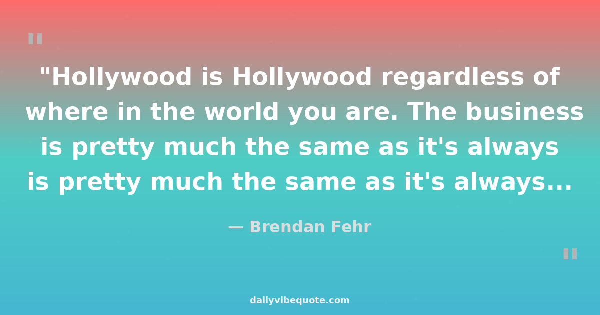 "Hollywood is Hollywood regardless of where in the world you are. The business is pretty much the same as it's always been. It's not to say there aren't plenty of good people and lot of professionals, but there is cap off limits, limited to everyone else."