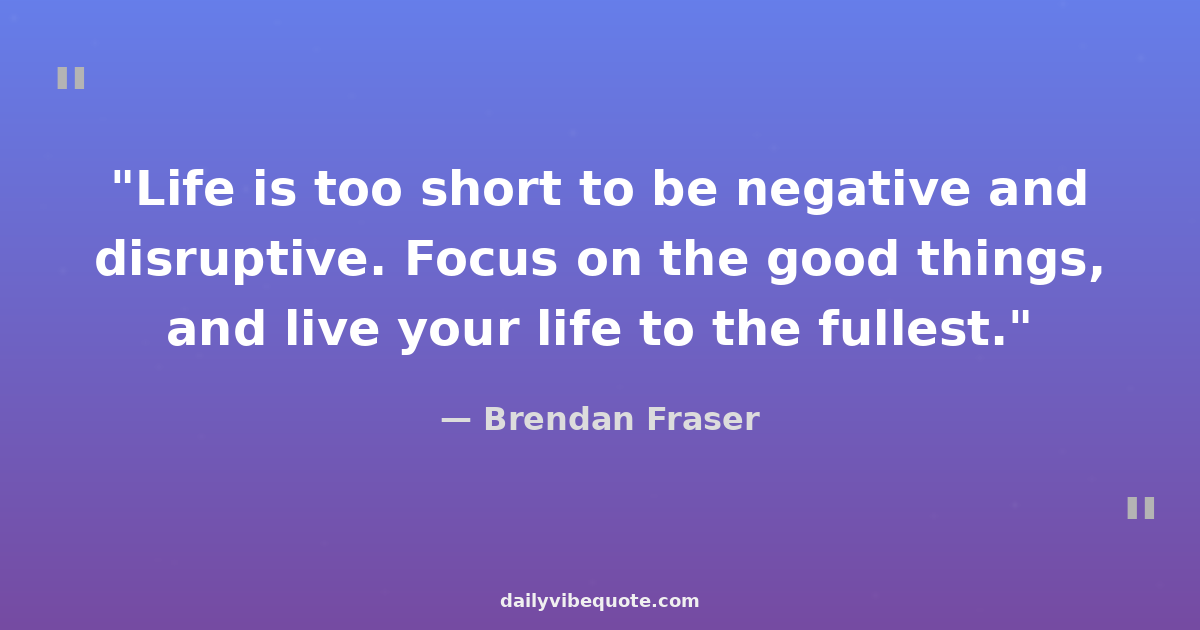 "Life is too short to be negative and disruptive. Focus on the good things, and live your life to the fullest."