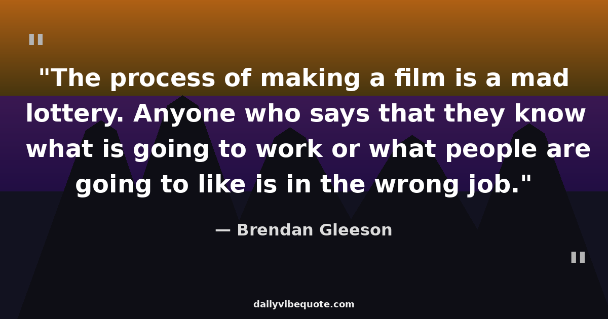 "The process of making a film is a mad lottery. Anyone who says that they know what is going to work or what people are going to like is in the wrong job."
