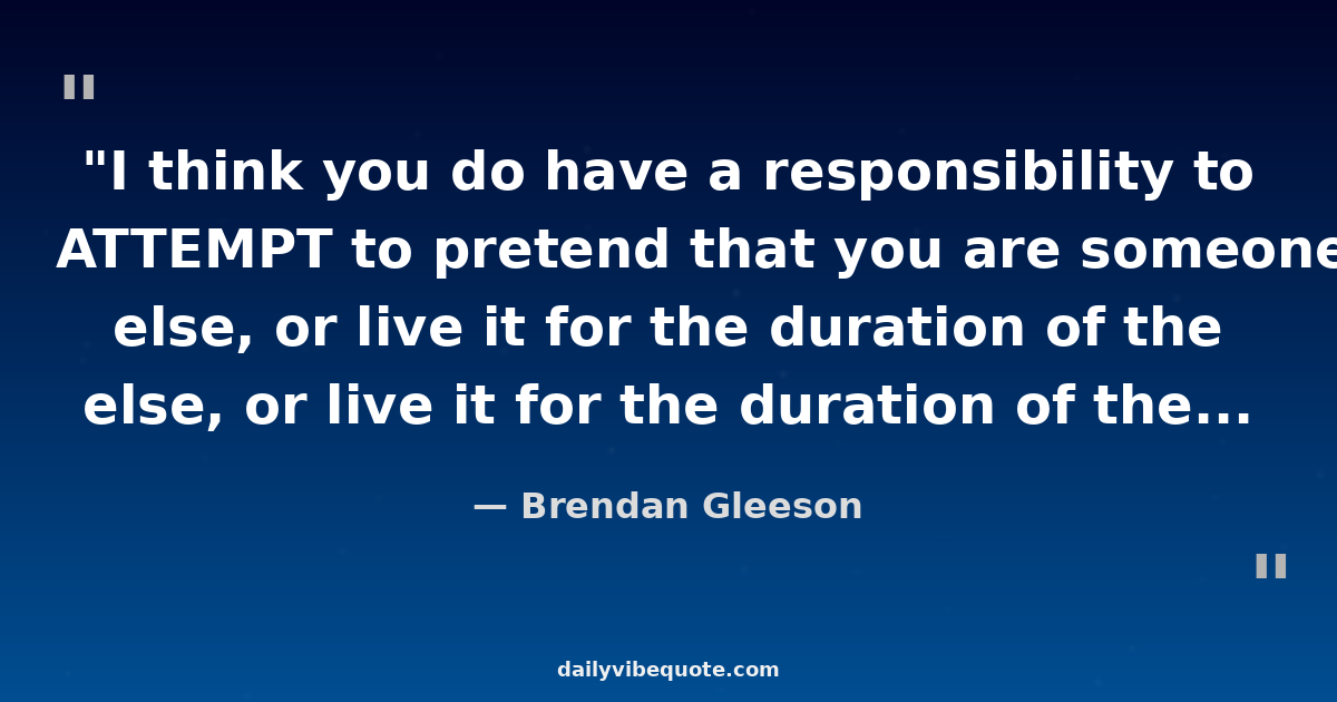 "I think you do have a responsibility to ATTEMPT to pretend that you are someone else, or live it for the duration of the time you're doing the take, but I don't think you have a responsibility to BECOME someone else."