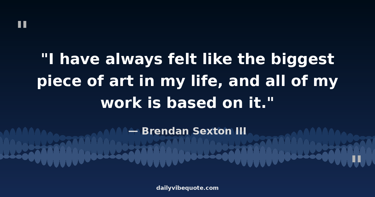 "I have always felt like the biggest piece of art in my life, and all of my work is based on it."