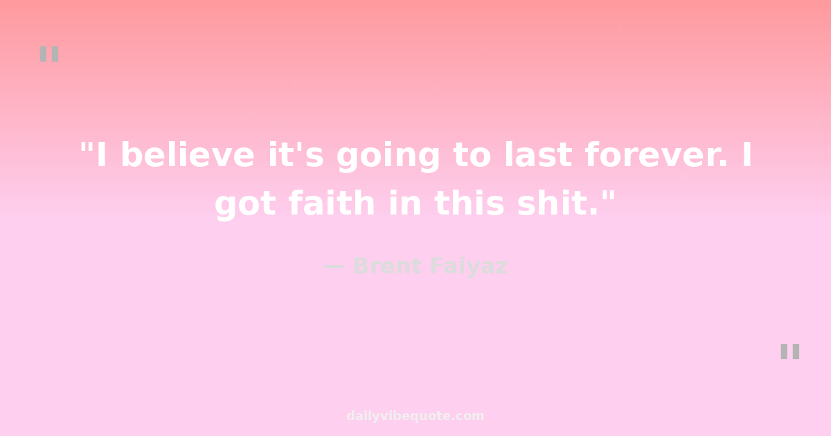 "I believe it's going to last forever. I got faith in this shit."