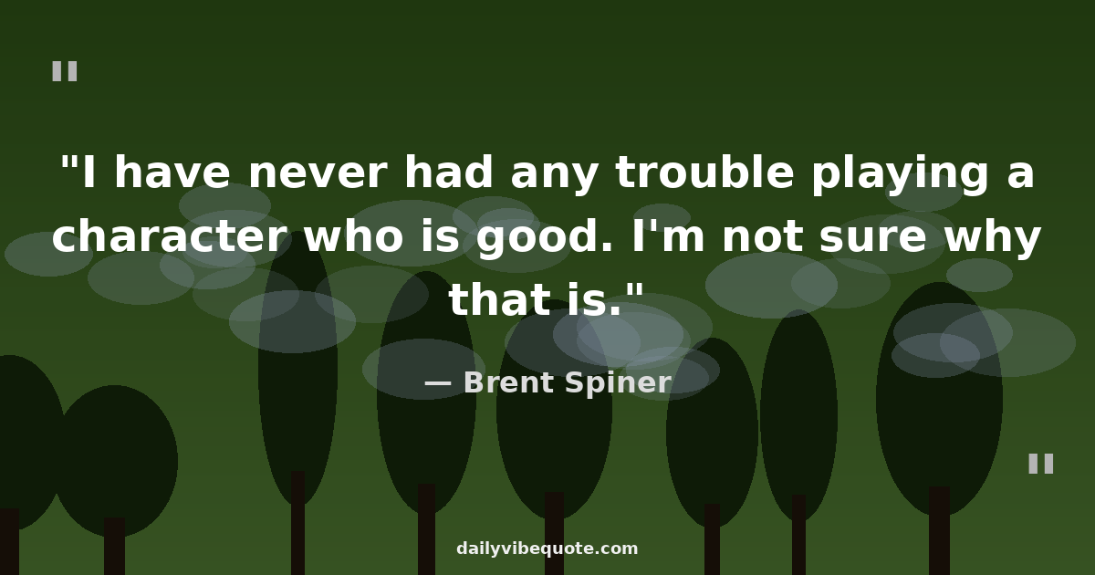 "I have never had any trouble playing a character who is good. I'm not sure why that is."
