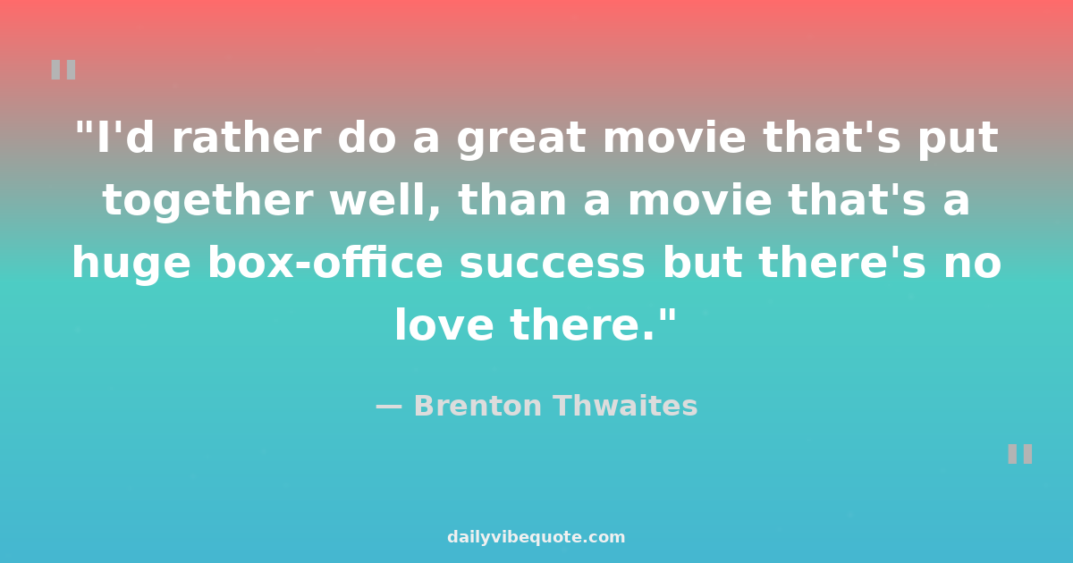 "I'd rather do a great movie that's put together well, than a movie that's a huge box-office success but there's no love there."