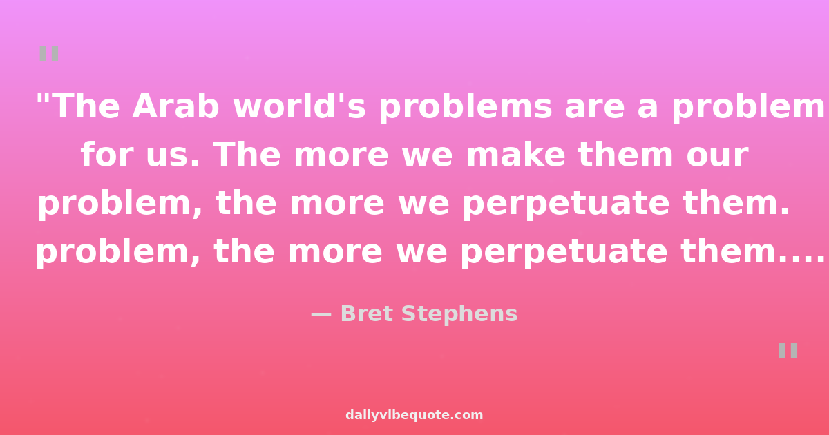 "The Arab world's problems are a problem for us. The more we make them our problem, the more we perpetuate them. The less we make them our problem, the more they become theirs."