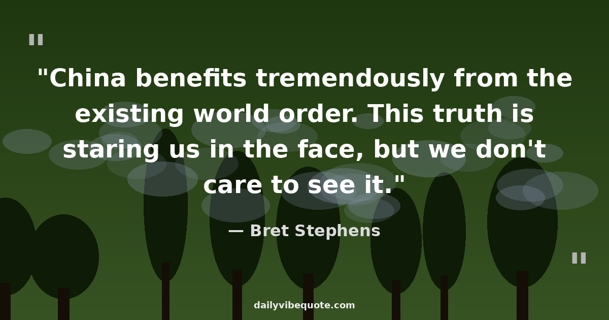 "China benefits tremendously from the existing world order. This truth is staring us in the face, but we don't care to see it."