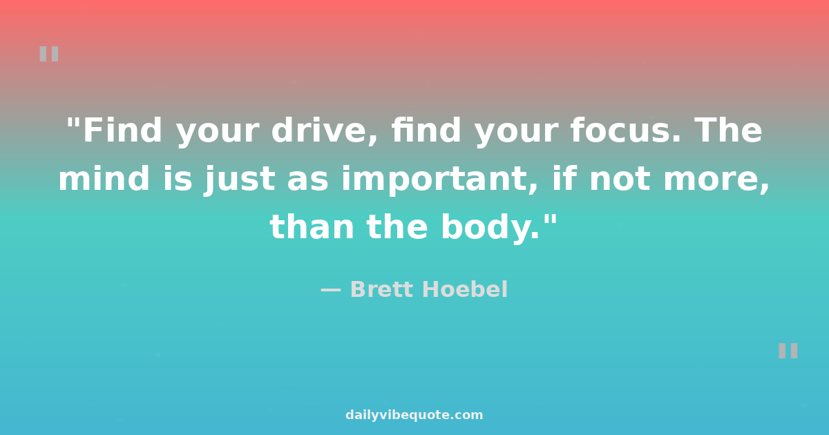 "Find your drive, find your focus. The mind is just as important, if not more, than the body."