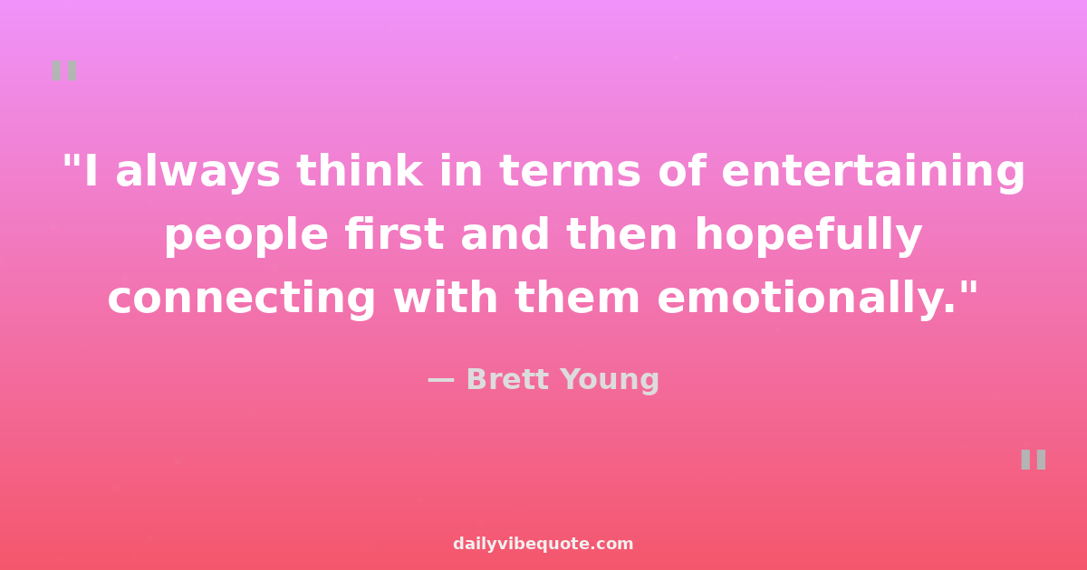 "I always think in terms of entertaining people first and then hopefully connecting with them emotionally."