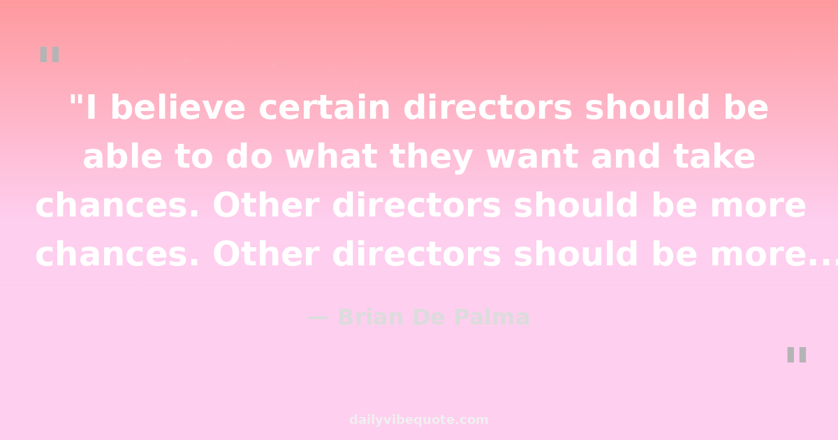 "I believe certain directors should be able to do what they want and take chances. Other directors should be more restrained and paint within a particular line. I believe in black and white, good and bad."