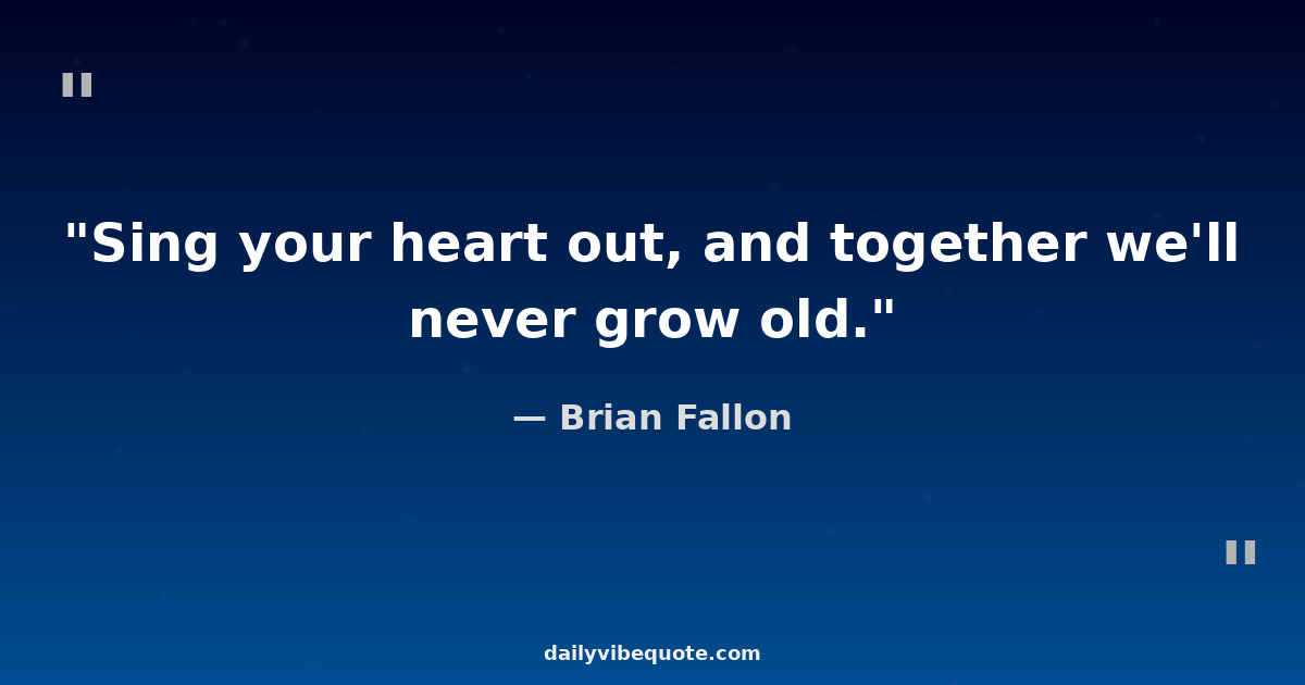 "Sing your heart out, and together we'll never grow old."