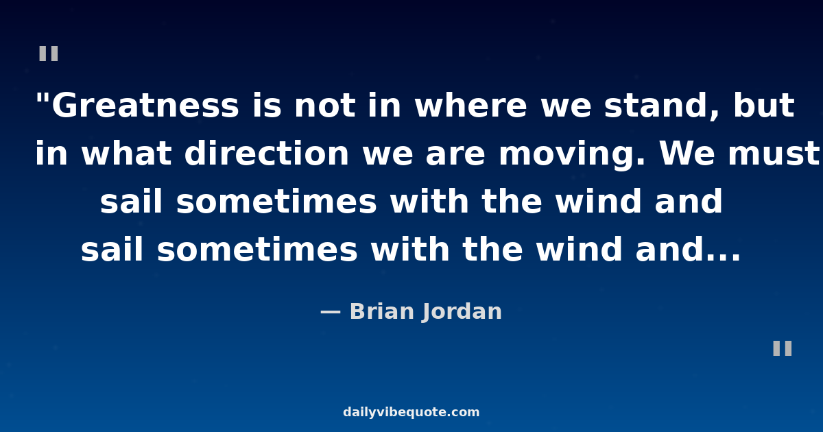 "Greatness is not in where we stand, but in what direction we are moving. We must sail sometimes with the wind and sometimes against it—but sail we must, and not drift, nor lie at anchor."