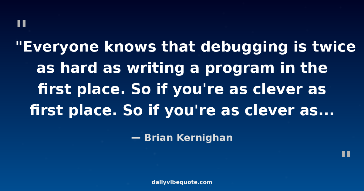 "Everyone knows that debugging is twice as hard as writing a program in the first place. So if you're as clever as you can be when you write it, how will you ever debug it?"