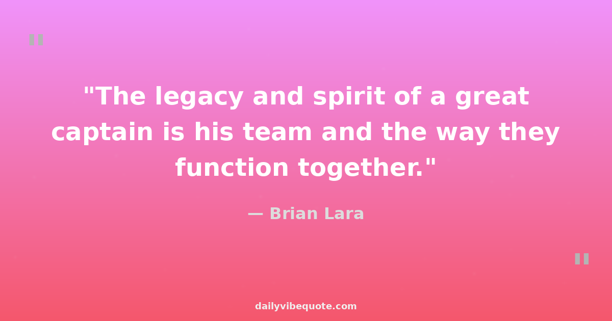 "The legacy and spirit of a great captain is his team and the way they function together."