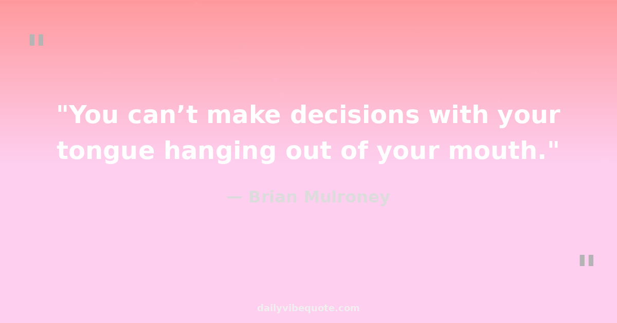 "You can’t make decisions with your tongue hanging out of your mouth."