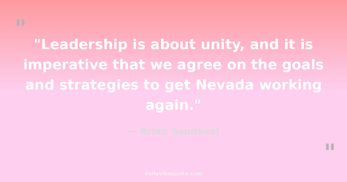 "Leadership is about unity, and it is imperative that we agree on the goals and strategies to get Nevada working again."