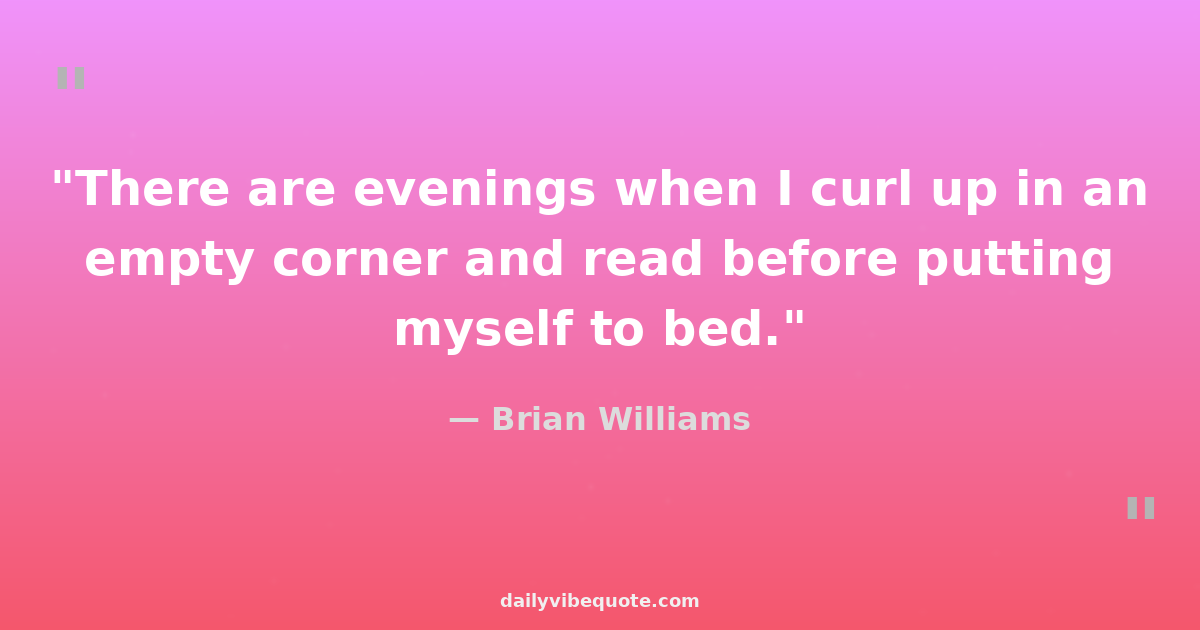 "There are evenings when I curl up in an empty corner and read before putting myself to bed."