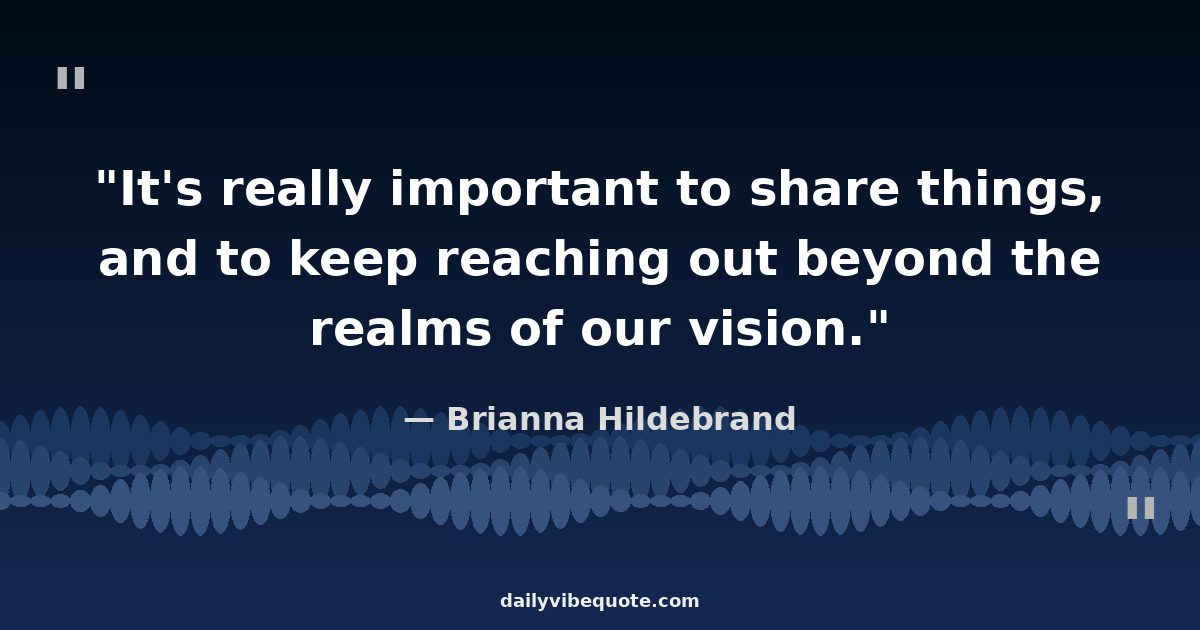 "It's really important to share things, and to keep reaching out beyond the realms of our vision."