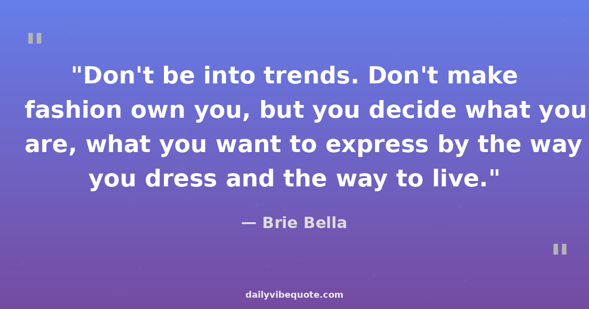 "Don't be into trends. Don't make fashion own you, but you decide what you are, what you want to express by the way you dress and the way to live."