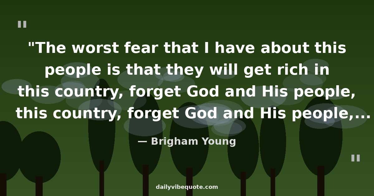 "The worst fear that I have about this people is that they will get rich in this country, forget God and His people, wax fat, and kick themselves out of the Church and go to hell. This people will stand mobbing, robbing, poverty, and all manner of persecution, and be true. But my greater fear for them is that they cannot stand wealth."
