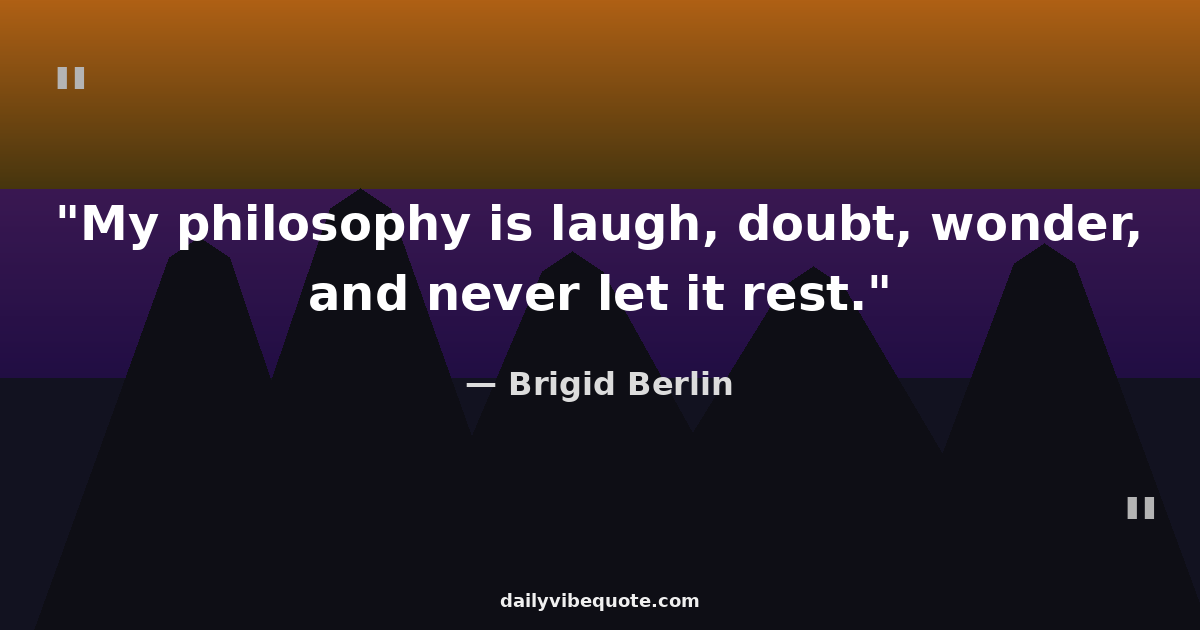 "My philosophy is laugh, doubt, wonder, and never let it rest."