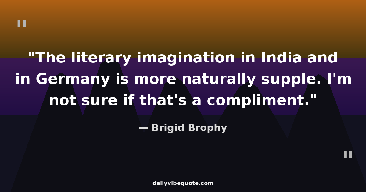 "The literary imagination in India and in Germany is more naturally supple. I'm not sure if that's a compliment."