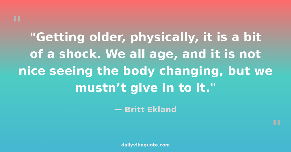 "Getting older, physically, it is a bit of a shock. We all age, and it is not nice seeing the body changing, but we mustn’t give in to it."