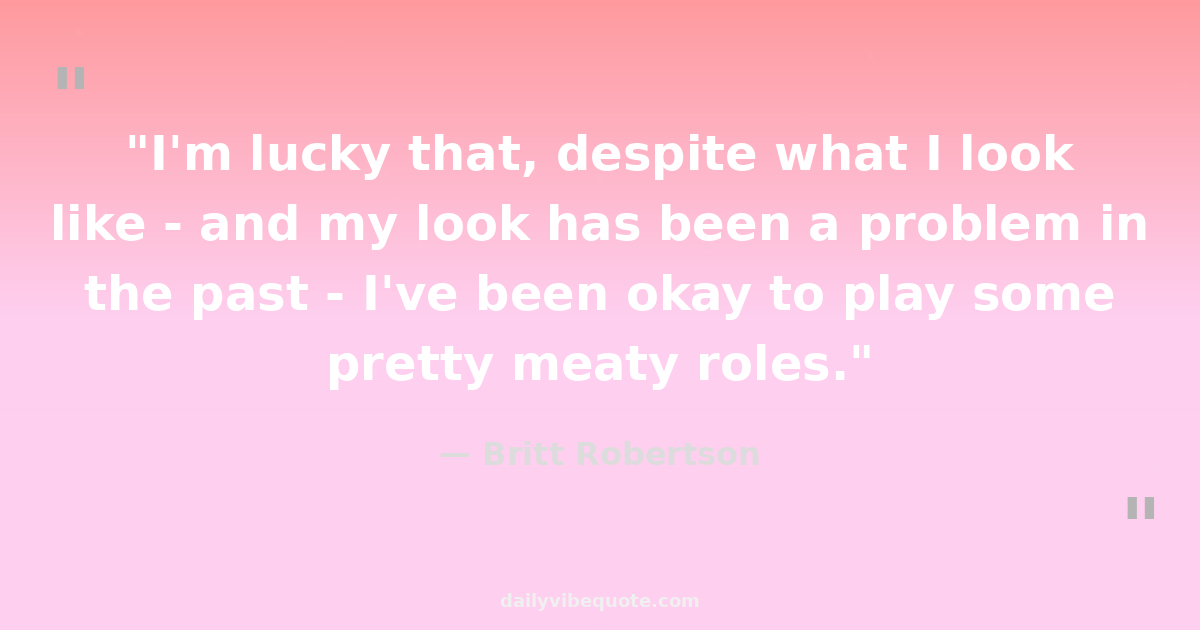 "I'm lucky that, despite what I look like - and my look has been a problem in the past - I've been okay to play some pretty meaty roles."