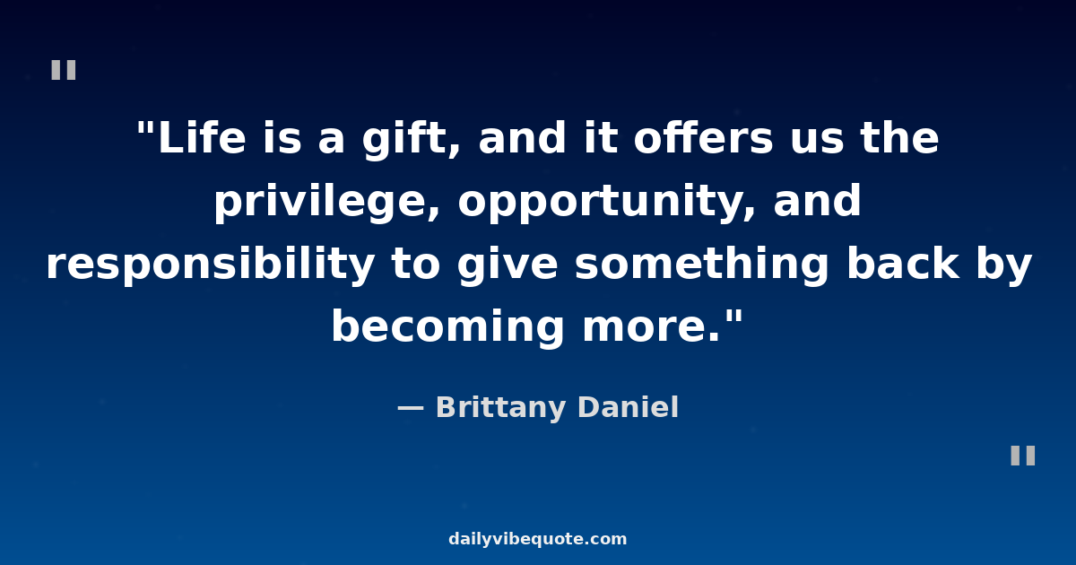 "Life is a gift, and it offers us the privilege, opportunity, and responsibility to give something back by becoming more."