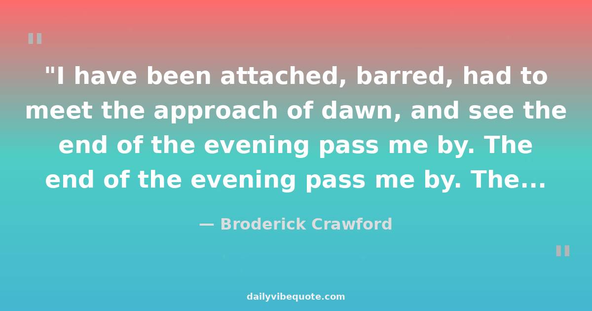 "I have been attached, barred, had to meet the approach of dawn, and see the end of the evening pass me by. The morning is the time to end, the best and not the worst. Don't say another word to me, believe me."