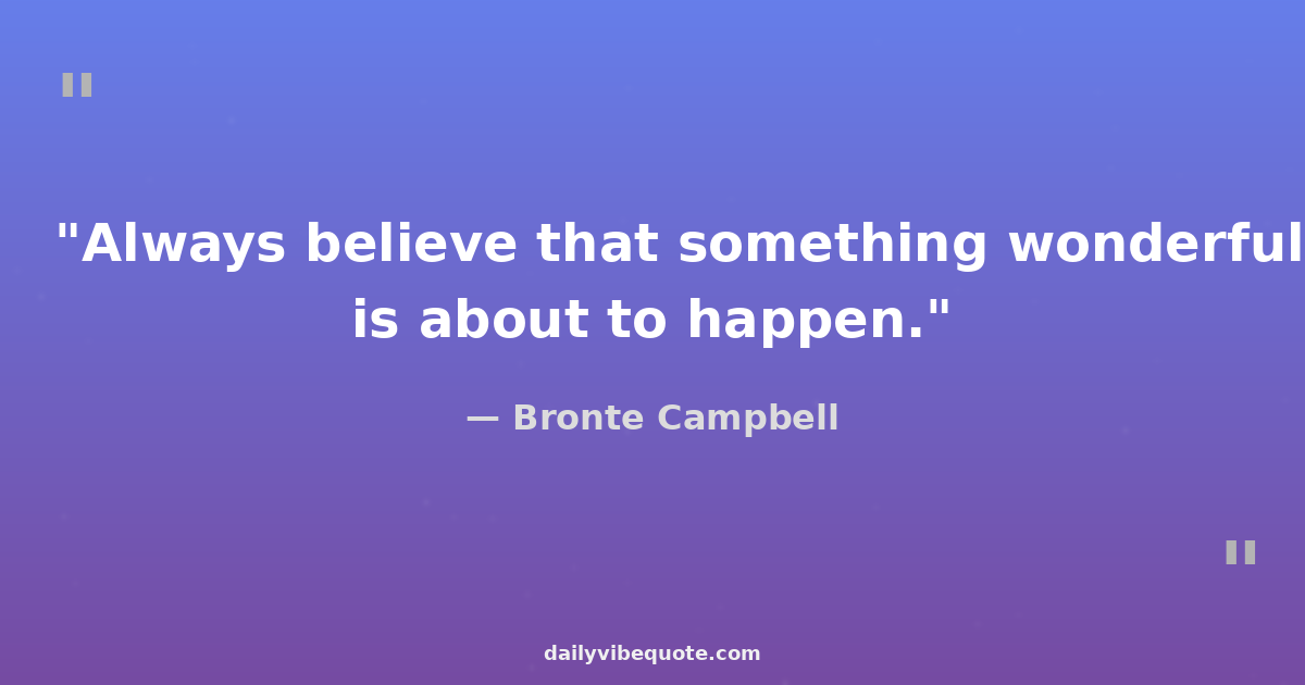 "Always believe that something wonderful is about to happen."