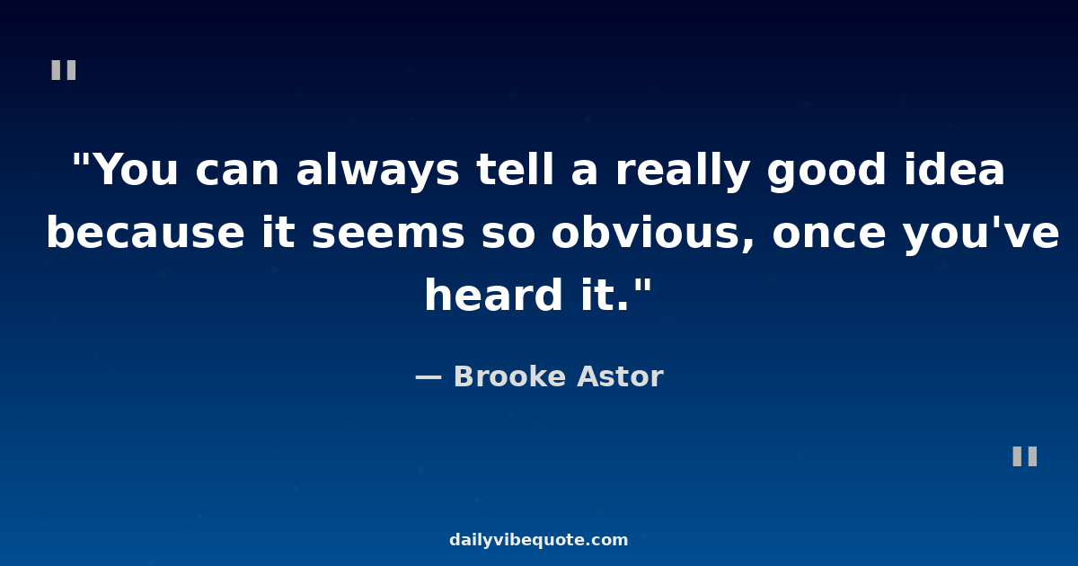 "You can always tell a really good idea because it seems so obvious, once you've heard it."