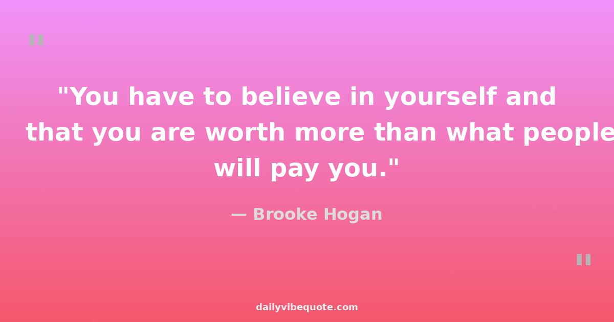 "You have to believe in yourself and that you are worth more than what people will pay you."