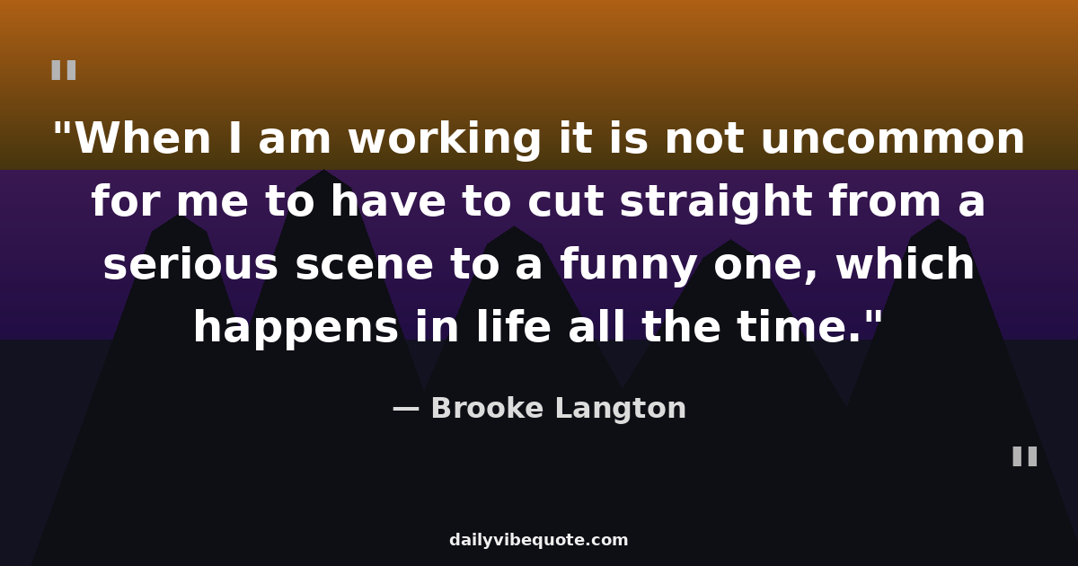 "When I am working it is not uncommon for me to have to cut straight from a serious scene to a funny one, which happens in life all the time."