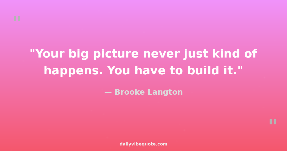 "Your big picture never just kind of happens. You have to build it."