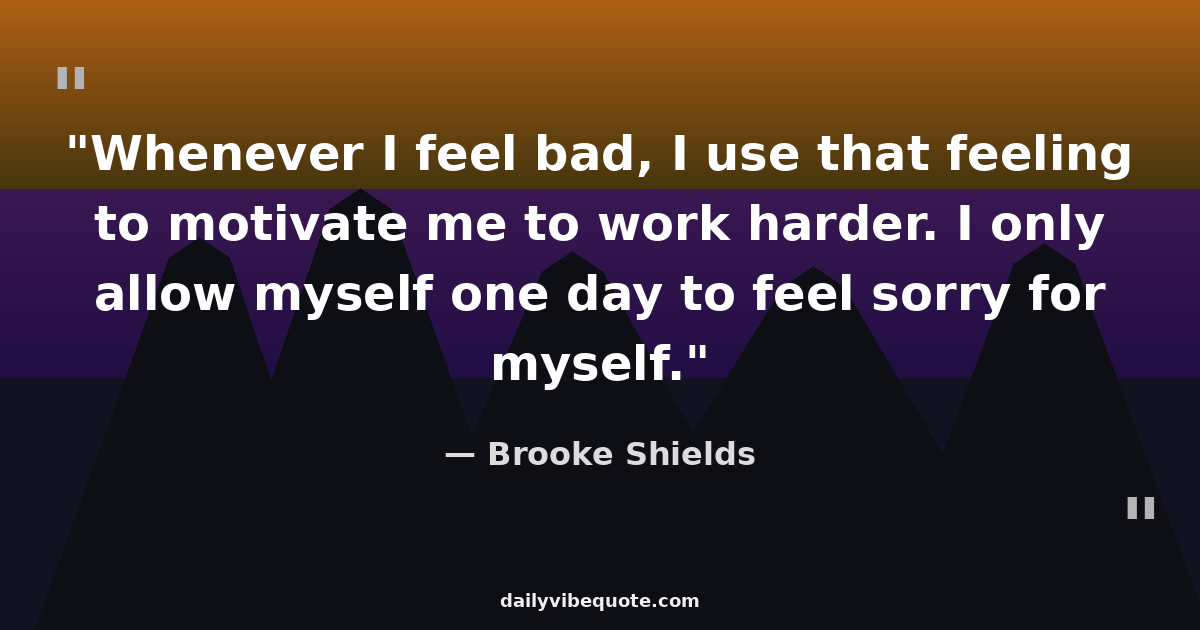 "Whenever I feel bad, I use that feeling to motivate me to work harder. I only allow myself one day to feel sorry for myself."