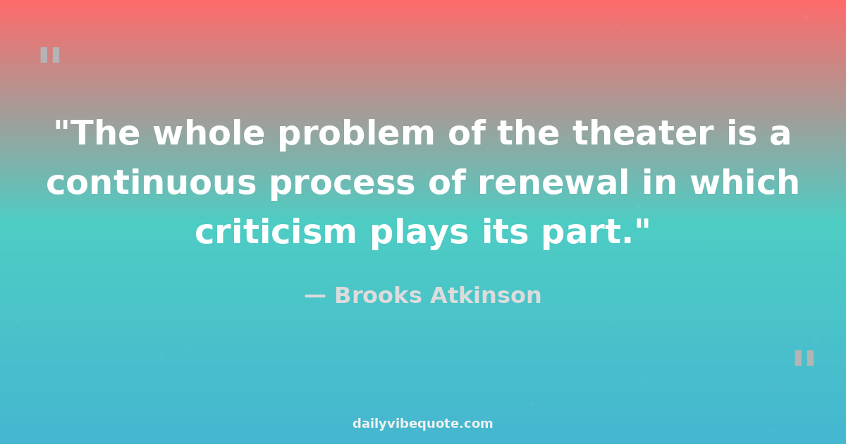 "The whole problem of the theater is a continuous process of renewal in which criticism plays its part."