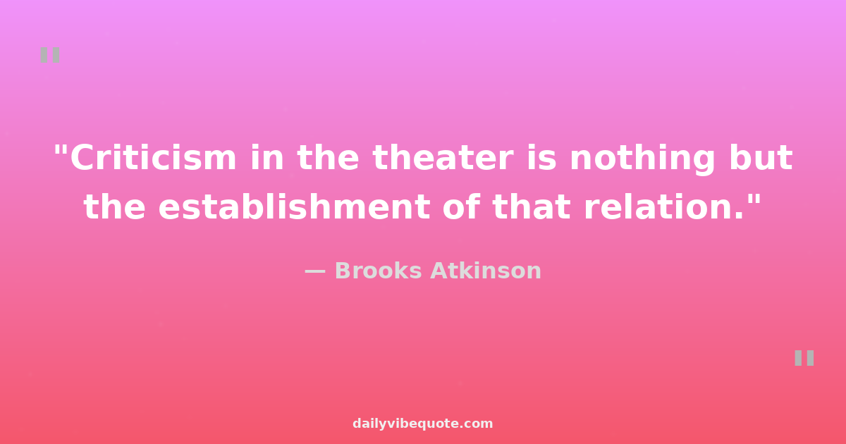 "Criticism in the theater is nothing but the establishment of that relation."