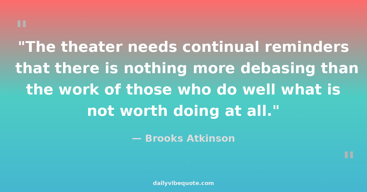 "The theater needs continual reminders that there is nothing more debasing than the work of those who do well what is not worth doing at all."