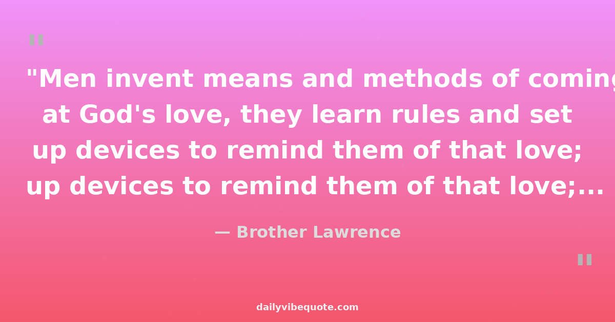 "Men invent means and methods of coming at God's love, they learn rules and set up devices to remind them of that love; and it seems like a world of trouble to bring oneself into the consciousness of God's presence. Yet it might be so simple. Is it not quicker and easier to do our work when we only do it for God?"