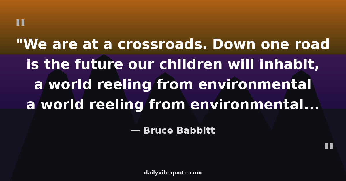 "We are at a crossroads. Down one road is the future our children will inhabit, a world reeling from environmental degradation, unstable climate, and a failure to embrace genuine sustainable solutions."