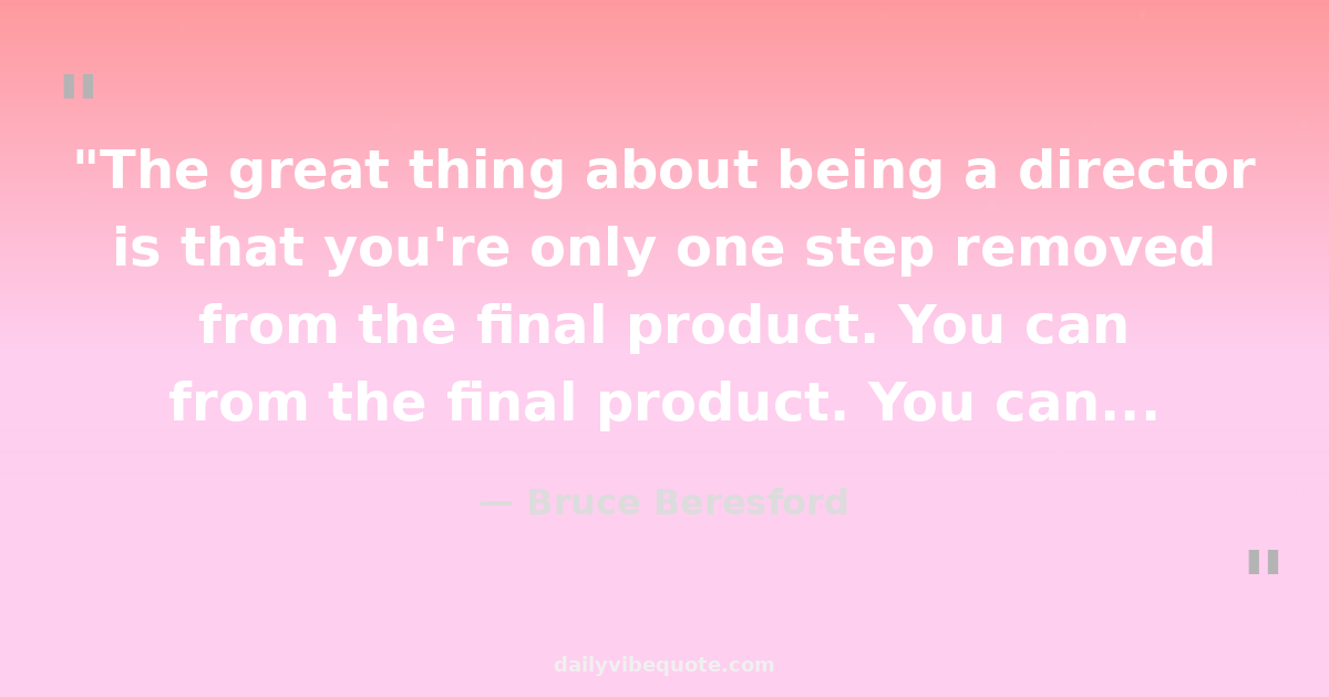 "The great thing about being a director is that you're only one step removed from the final product. You can contribute to performances and to the script."