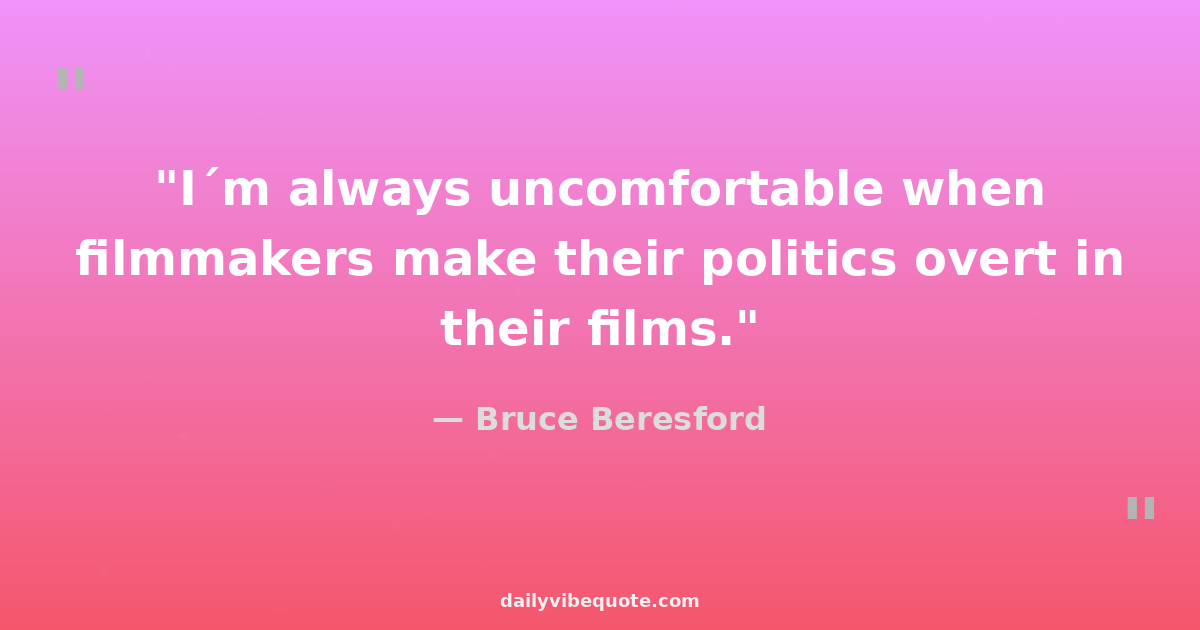 "I´m always uncomfortable when filmmakers make their politics overt in their films."