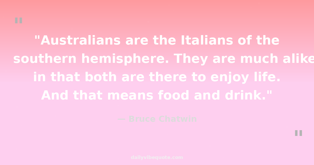 "Australians are the Italians of the southern hemisphere. They are much alike in that both are there to enjoy life. And that means food and drink."
