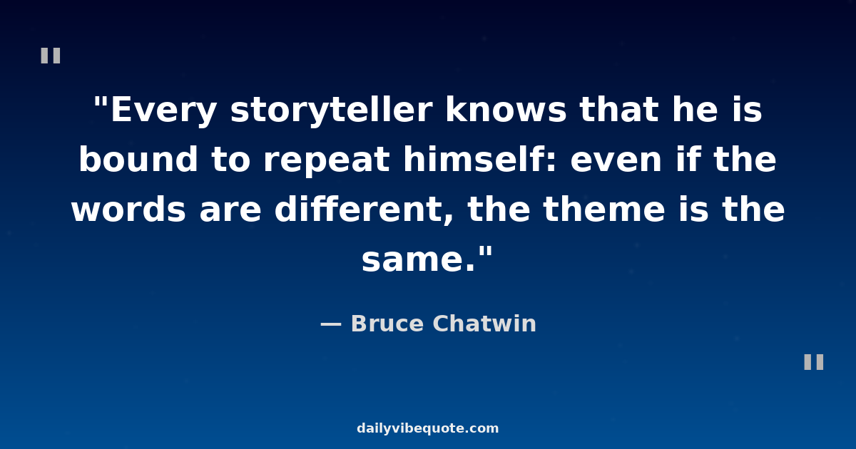 "Every storyteller knows that he is bound to repeat himself: even if the words are different, the theme is the same."