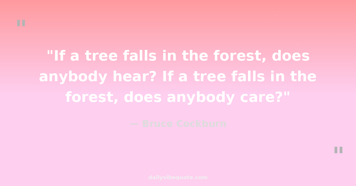 "If a tree falls in the forest, does anybody hear? If a tree falls in the forest, does anybody care?"