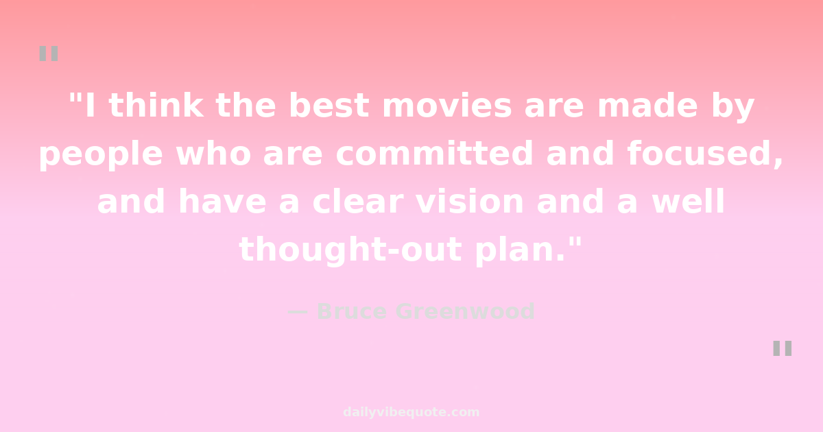 "I think the best movies are made by people who are committed and focused, and have a clear vision and a well thought-out plan."