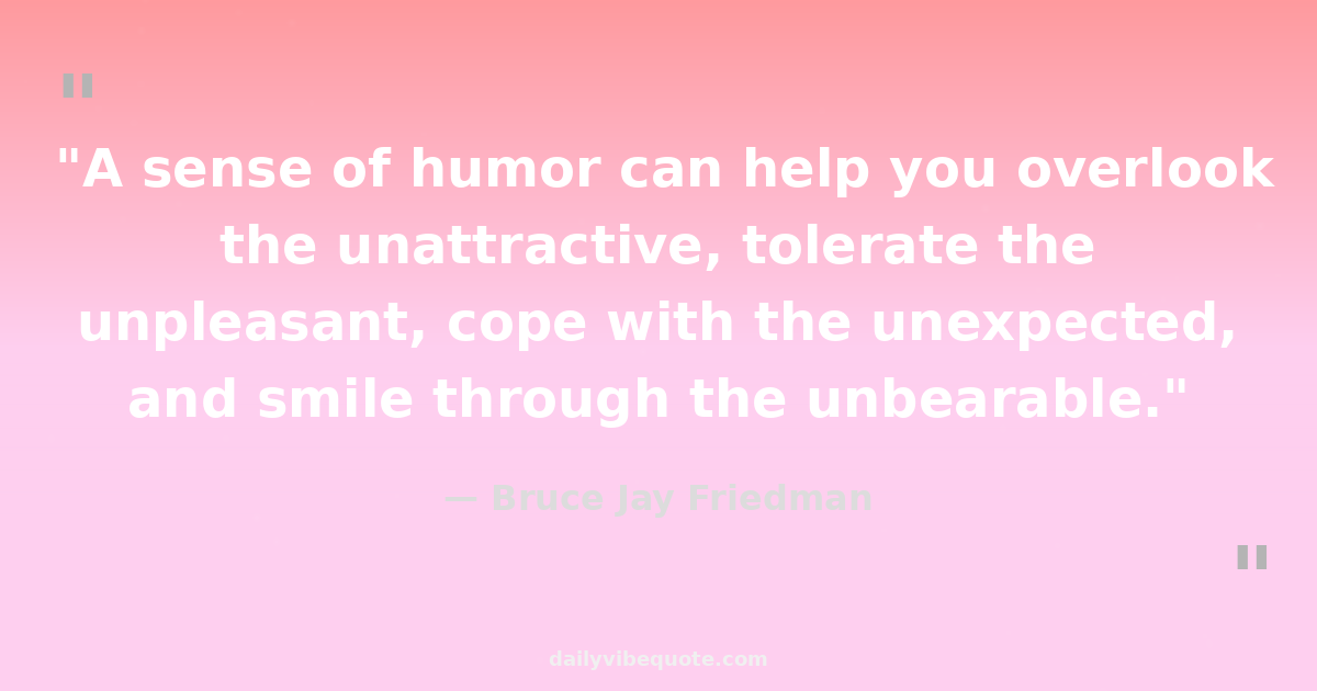 "A sense of humor can help you overlook the unattractive, tolerate the unpleasant, cope with the unexpected, and smile through the unbearable."