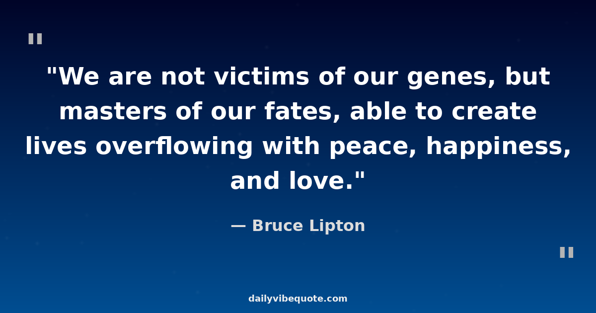 "We are not victims of our genes, but masters of our fates, able to create lives overflowing with peace, happiness, and love."