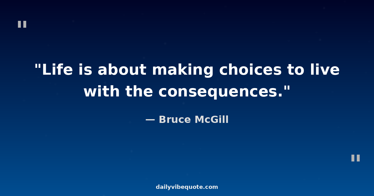 "Life is about making choices to live with the consequences."