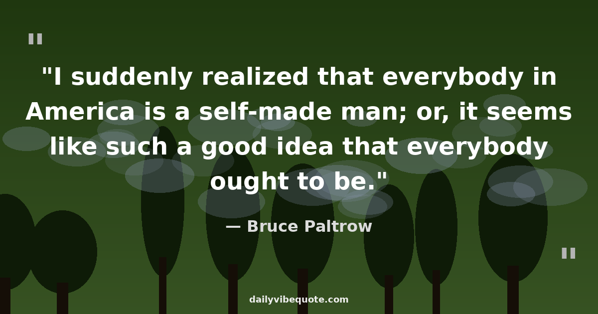 "I suddenly realized that everybody in America is a self-made man; or, it seems like such a good idea that everybody ought to be."